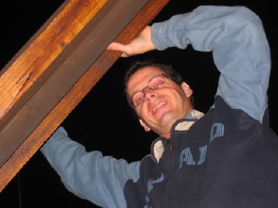 Je kunt kollektoren op het dak laten plaatsen, maar dat is duur. Het dak is hoog (installatiekosten) en tevens staat de verwarmingsketel beneden, dus dat kost ook veel (koperen) leiding. Er zijn ook mogelijkheden om die kollektoren schuin naar beneden te laten hangen aan het balkon. Het probleem daarbij is, dat het balkon op lange termijn naar beneden kan zakken en dat is ook weer zowat. Dus hebben we weer een houtconstructie ontworpen en is het afdak uitgebreid bij het balkon.